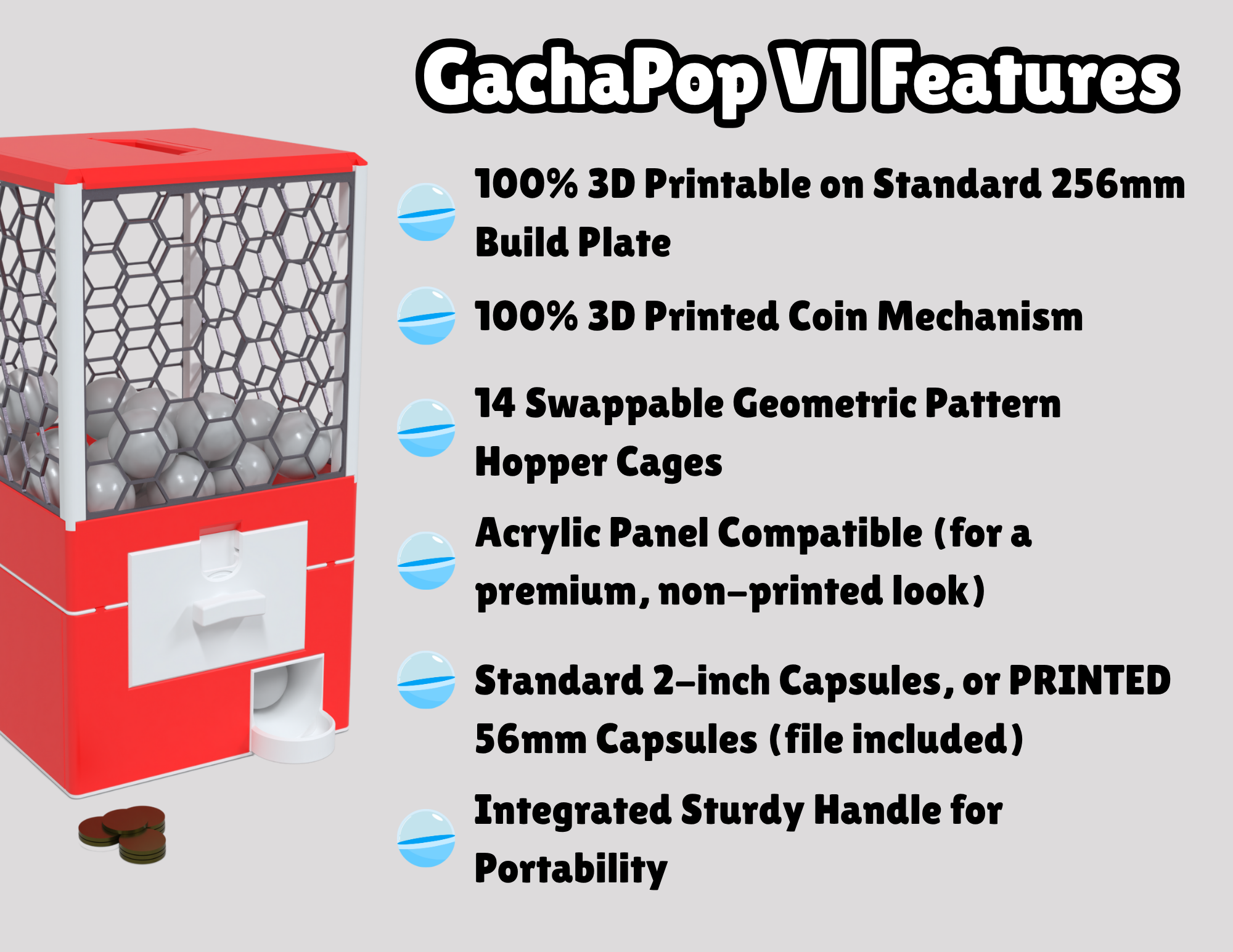 THIS IS THE PAGE FOR THE **DIGITAL FILES** FOR THE V1.1 GachaPop 3D Printable Vending Machine